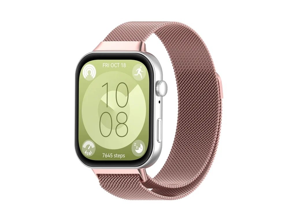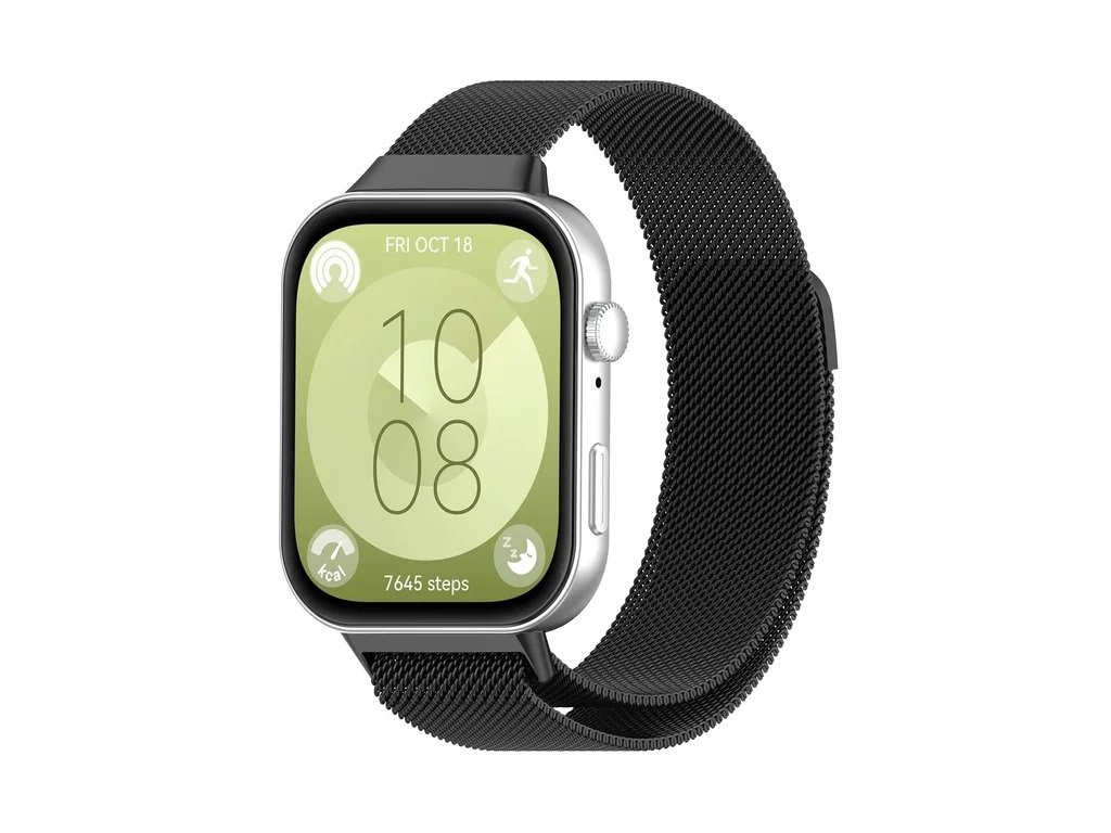 Luxusní celokovový náhradní řemínek Milánský tah pro Huawei Watch Fit 3, 4 a 4 Pro. Řemínek je vyroben z kvalitní nerezové oceli (304). Zapínání náramku je řešeno extra silným magnetickým zapínáním.
